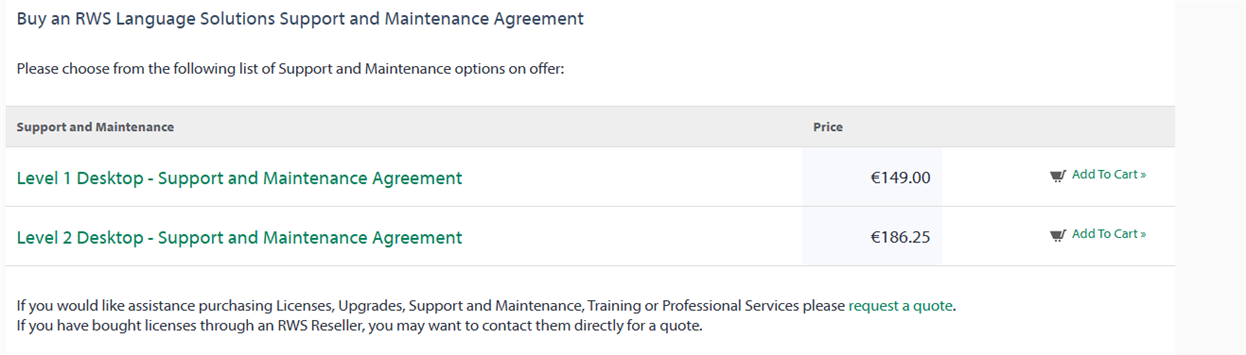 - If your support contract is currently inactive AND you have the latest edition of Trados software in your RWS account then the following screen will appear: