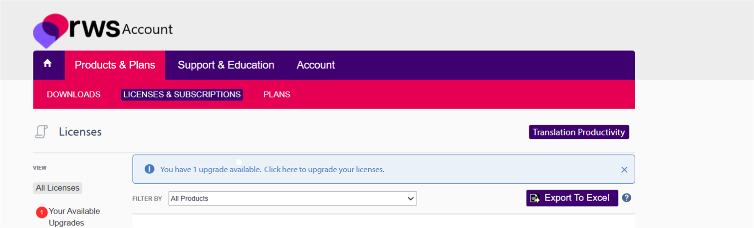 If you purchased an upgrade, the upgrade will be available in your RWS account