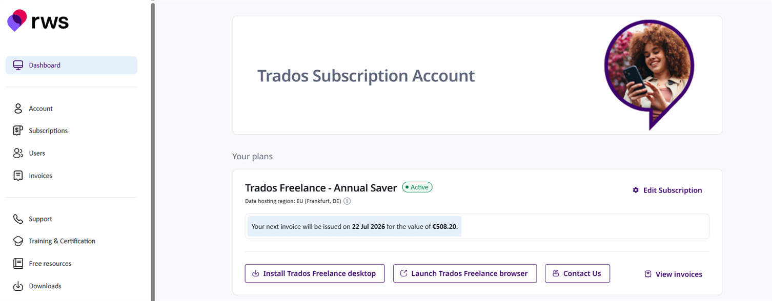 Please note: Trados Freelance also ensures your access to the cloud version at this link: https://eu.cloud.trados.com/ - Click on your selected subscription plan and fill out the form.