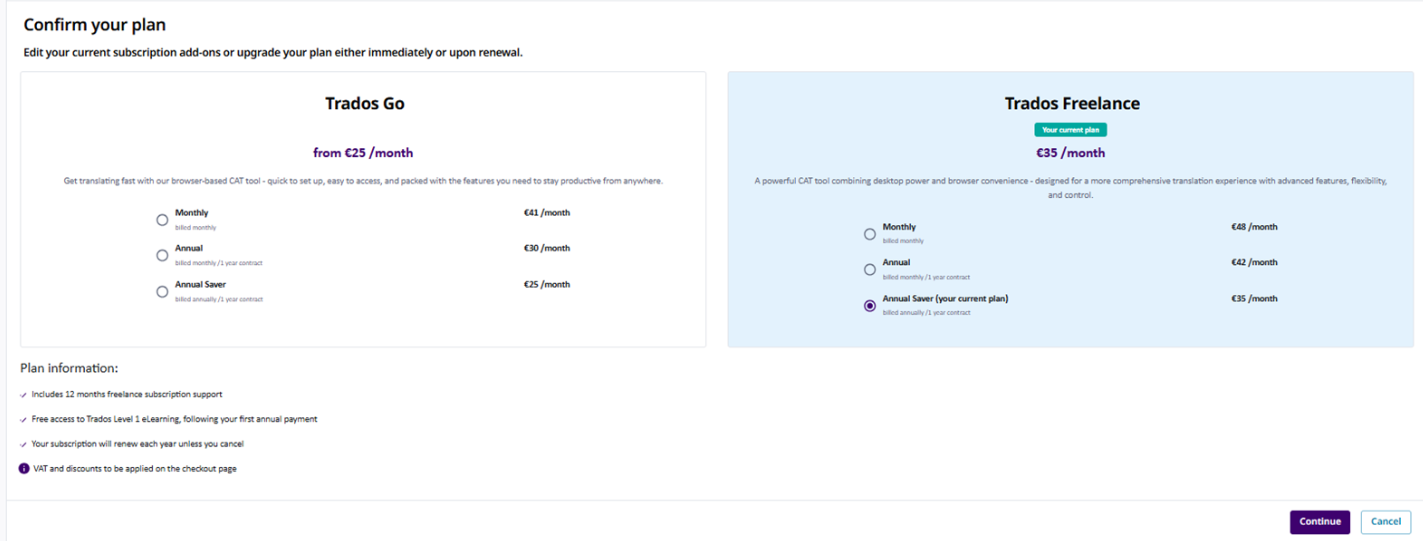 5. You’ll then be redirected to the Trados Subscription page where you can confirm your subscription plan.
