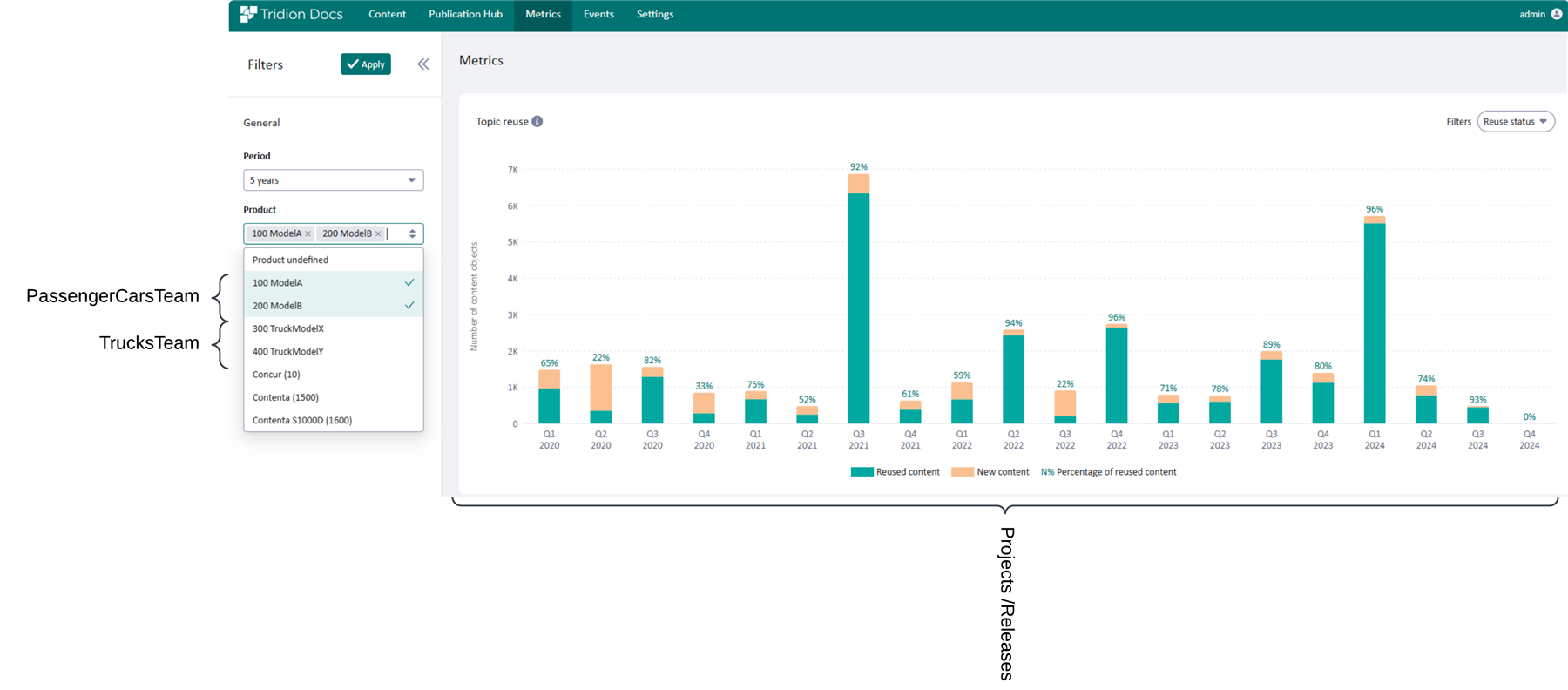 Tridion Docs Metrics feature by default shows system-wide information. Is it always enough to get valuable insights? What if you need the return on investment information for a product family to either present this information to upper management or use it as a reference to another team that can do their reuse activities better?
