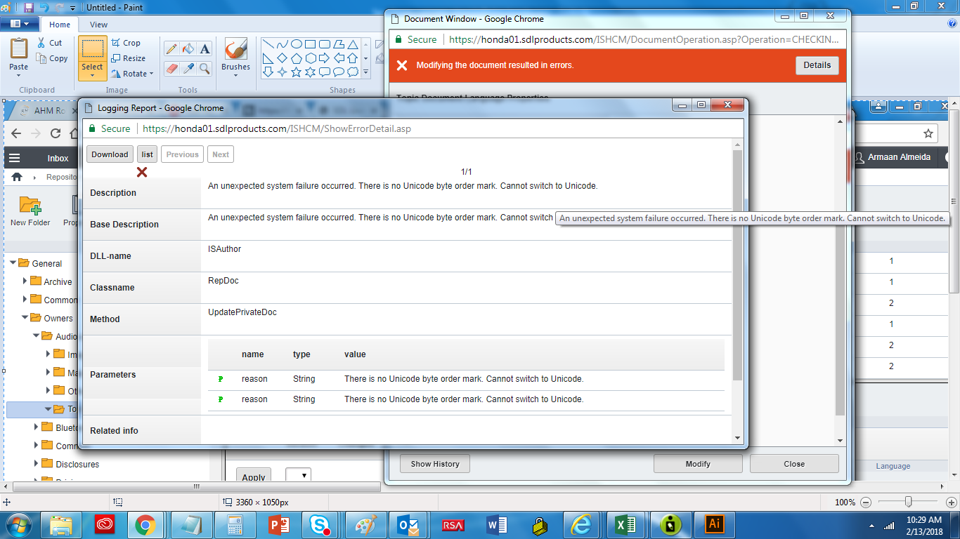 Screenshots from when we tried an individual upload as well via Content Manager; the same error message was displayed: