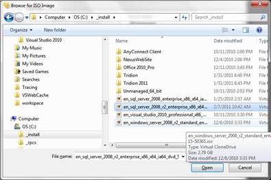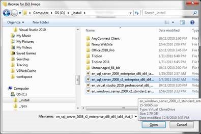 Browse to the location of your SQL Server 2008 R2 ISO and click open