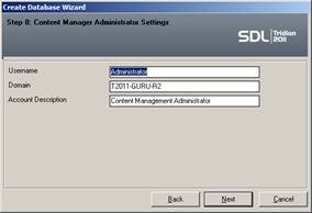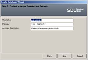 Enter the details of the "Tridion Administrator" account. This will default to the user currently executing the installation.