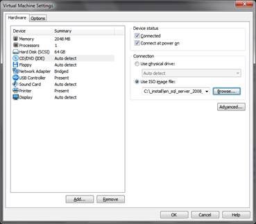 Link the SQL Server 2008 R2 ISO file to your VM image