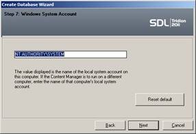 Enter the SYSTEM account to use. Typically you will NOT change this value.