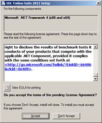 If you have not manually installed the Microsoft .NET Framework 4, you will be prompted to accept the Microsoft License Agreement. Click on "Accept" to continue.