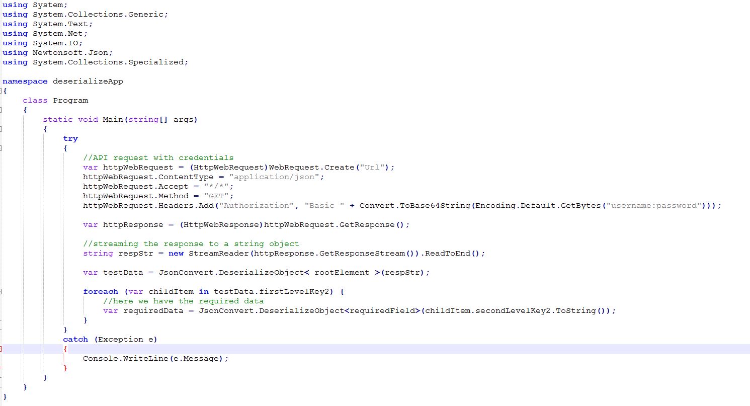 I am not sure how frequently you come across situation where you need to deserialize a response object of a rest API in C#, but I come across it quite frequently. I did lots of search to figure out the concrete answer, I couldn’t find anything that answered my requirement. After spending some time (quite a more time) finally I was able to deserialize response object according to my requirement.