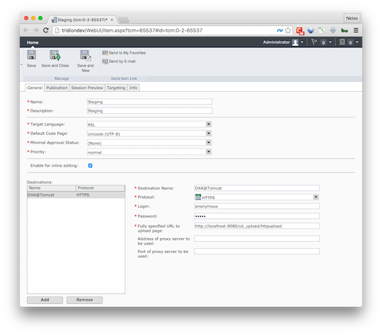 - HTTP destination: http://[DXA_HOST]:8080/cd_upload/httpupload