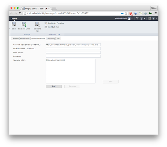 - Session Preview - Content Delivery Endpoint URL: http://[DXA_HOST]:8080/cd_preview_webservice/ws/odata.svc