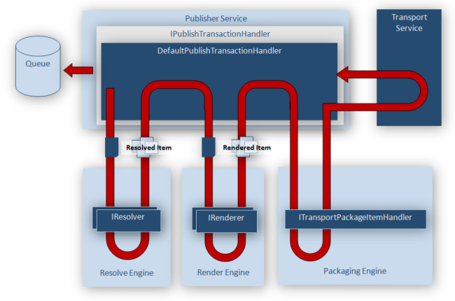 Extending the custom rendering process is similar to the resolving process. The Render engine handles rendering each resolved item based on the publish instruction and selected publication target. A custom renderer can change the rendered item, i.e. adding additional metadata to the item so this becomes available on the Content Delivery side. Like resolvers, the renderers can also be chained in the render process, so you can keep the default renderer in place and add your customization as an extension.