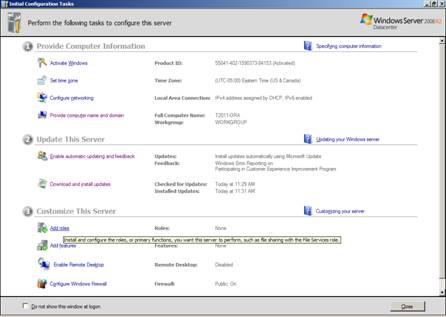 On the "Initial Configuration Tasks" screen, click on "Add Roles" (under "3. Customize This Server")