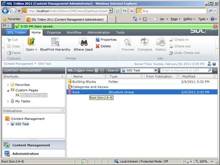 Publications are saved using the new .NET framework, and this test has validated that your system can use the .NET framework. We must now create a Structure Group, which uses Legacy components.