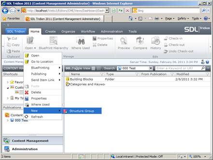 Right-click your newly created publication and select New -> Structure Group from the context menu.