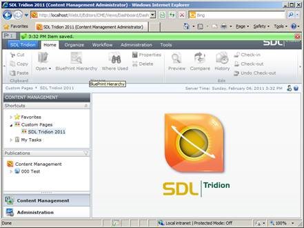 You should now see the Tridion Content Manager Explorer Dashboard. You can use this screen to change your user settings, follow links for more information about Tridion, etc.