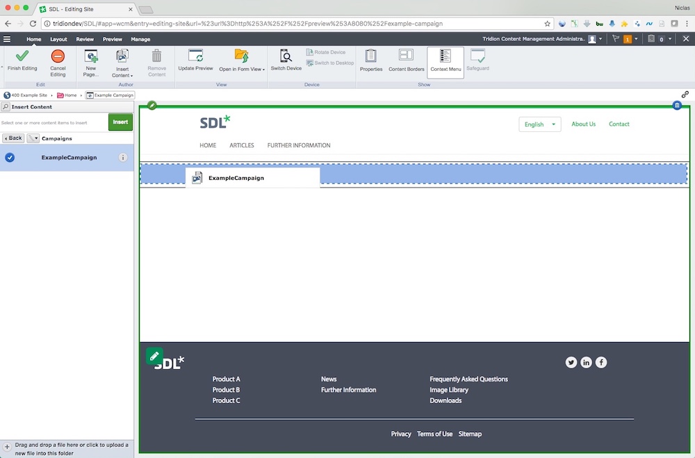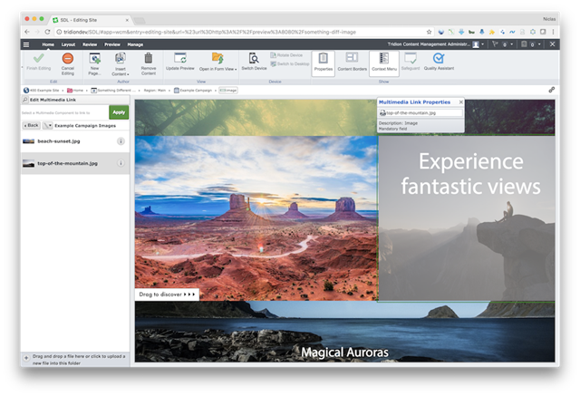 - Support for upload of campaign images into SDL Web so they can be managed from within the CMS