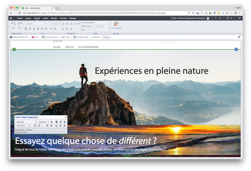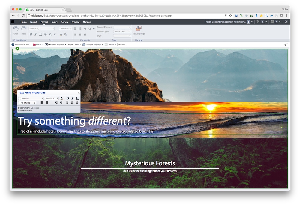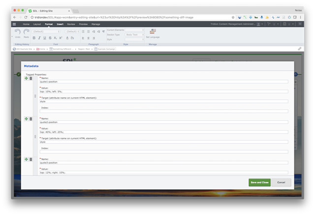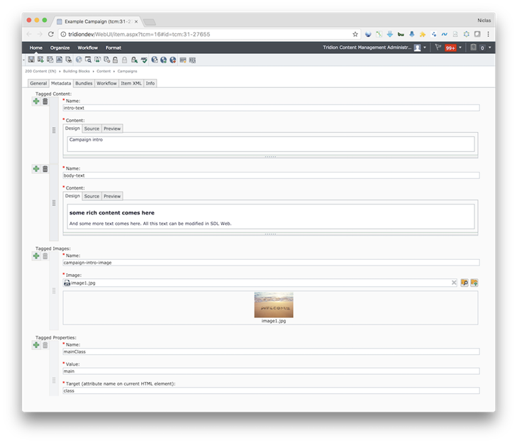 <div class="main" data-property-name="mainClass" data-property-target="class"><div class="intro"><img data-image-name="intro-image" src="images/image1.jpg"/><h1 data-content-name="intro-text">Campaign intro</h1></div><div data-content-name="body-text"><h3>some rich content comes here</h3><p>And some more text comes here.All this text can be modified in SDL Web.</p></div></div>