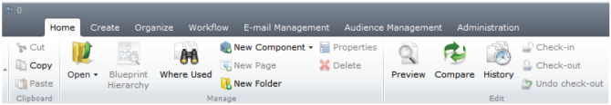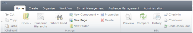To best understand this concept, let's look at a couple examples of the new Tridion 2011 Ribbon.