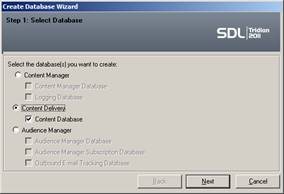 Using the Tridion Database Manager, create a new Content Delivery database.