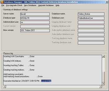 Verify that the script completes successfully. Click File -> Exit to exit the database manager.