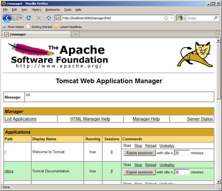You can now access the Tomcat App manager at the url http://localhost:8080/manager/html