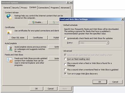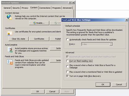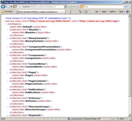Tip: you may want to change your Internet Explorer settings to display the Atom+Pub xml returned by this webservice by going to Internet Explorer -> Options, Content Tab, and clicking on Settings under "Feeds and Web Slices" and unchecking the box "Turn on feed reading view". You need to restart IE for this change to be active