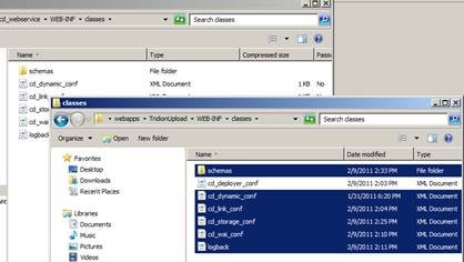 Copy the configuration files you created for the deployer app from C:\Tomcat\Webapps\TridionUpload\WEB-INF\classes into this location (you don't need to copy the cd_deployer_conf.xml file)