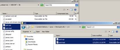 On a different explorer window, navigate to [Tridion_Install]\Content Delivery\java\third-party-lib\1.5, and copy both jar files to the zip file's WEB-INF\lib folder
