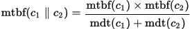 Finally, with their individual MTBF and MDF values, we can calcuate the MTBF and MDT values if the system contains a number of sequential or parallel components. Again I will skip the math bit but just list the formula below