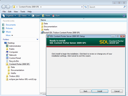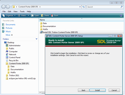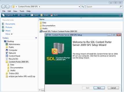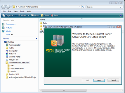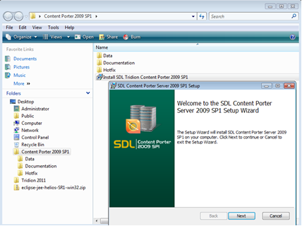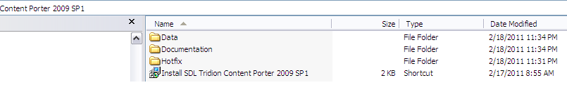 Unzip the software package received or downloaded and double click "Install SDL Tridion Content Porter 2009 SP1" file available in the root folder of the Content Porter 2009 SP1 package.