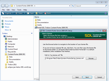 Select the content porter license file cp_license.xml which can be requested from SDL Tridion Content Support and click Next.