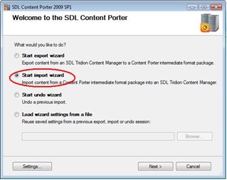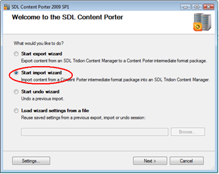 Choose "Start import wizard", click Next