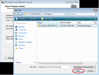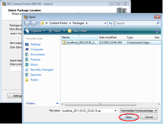 Navigate to and select the previously generated export package.