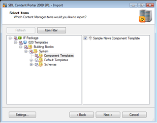 Navigate to and select the items to import from their owning publication.