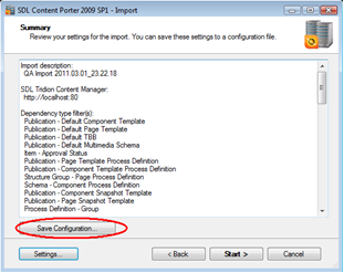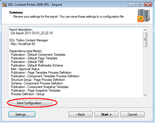 Click "Save Configuration" to create a reference file containing the current selection for import. This will be useful on subsequent imports should they be necessary as well as for "Undoing" committed imports.