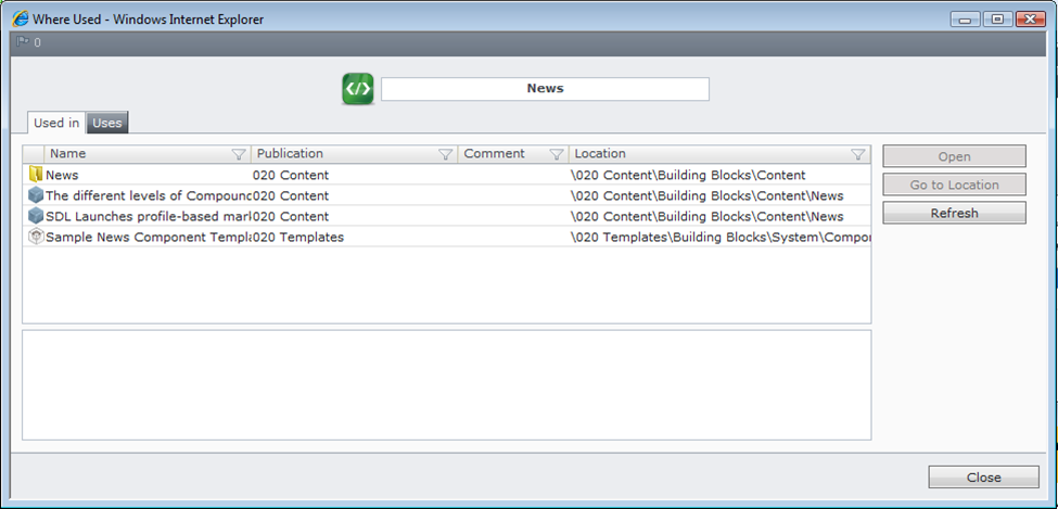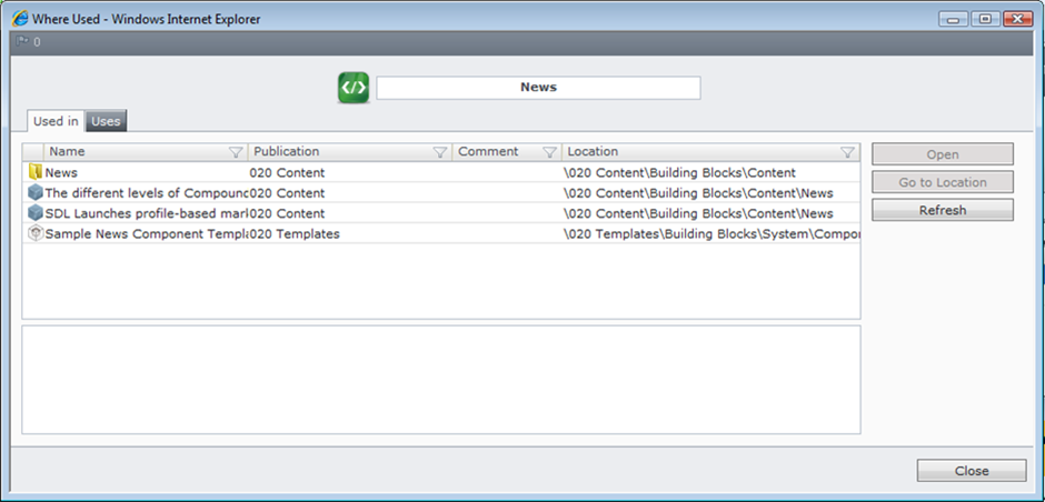 b. Use Tridion's "Where Used" functionality to get a list of potentially impacted items.