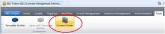 Launch Content Porter Client by activating it from the GUI Ribbon Toolbar