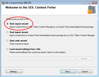 Choose "Start export wizard", click Next