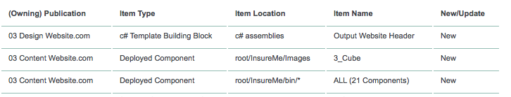 Warning: Note that if an item contains component links or references templates which do not exist in the target environment, they will be imported along regardless of opting out of updates. These items will be added at the same level as the item imported instead of their owning publication to allow the item to be updated/created, therefore potentially create blueprint conflicts on future imports.