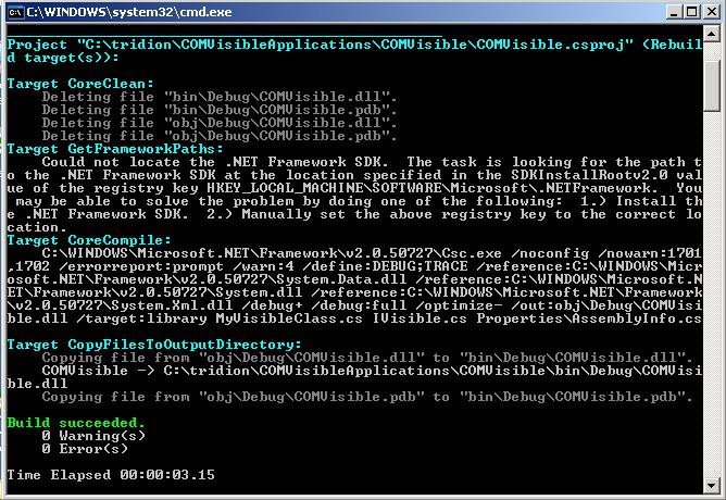 C:\WINDOWS\Microsoft.NET\Framework\v2.0.50727\msbuild "C:\My Project\COMVisible.csproj" /t:Rebuild /p:TargetFX1_1=true
